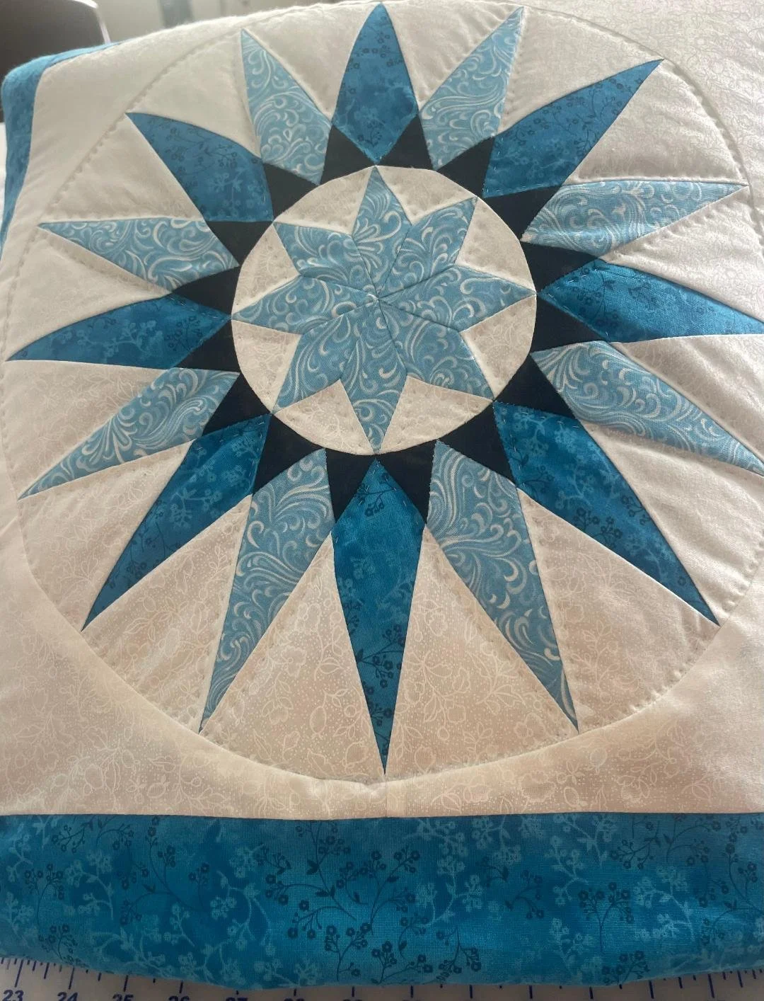 A Quillow is a quilted square, pillow, and blanket combined. Each is handmade and looks like a pillow that opens into a beautiful lap covering.